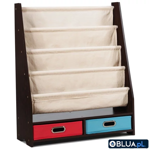 Regał na książki do pokoju dziecięcego Dużo miejsca: regał dla dzieci ma 4 półki i 3 przegródki, aby maksymalnie wykorzystać miejsce do przechowywania wszystkich książek. Dodatkowo na dole znajdują się 2 pojemne pudełka, gdzie można przechowywać zabawki. Gładka powierzchnia i gwarancja bezpieczeństwa: rogi regału są gładkie i zaokrąglone, dzięki czemu nie istnieje ryzyko zranienia się przez dzieci kantami lub ostrymi krawędziami. Gładką powierzchnię można łatwo wyczyścić wilgotną szmatką. Solidny materiał i stabilna konstrukcja: wykonany z wysokiej jakości MDF regał jest mocny i trwały. Dzięki sosnowym listwom i bawełnie półki utrzymają nawet najcięższe książki. Łatwy w montażu i wielofunkcyjny: regał zawiera kompletne akcesoria i instrukcje ułatwiające montaż . Jest odpowiedni dla dzieci do czytania w dowolnym miejscu, np. w pokoju dziecięcym, salonie, klasie, przedszkolu, żłobku itp. Paczka zawiera: 1x regał dla dzieci 1x instrukcja