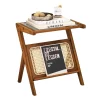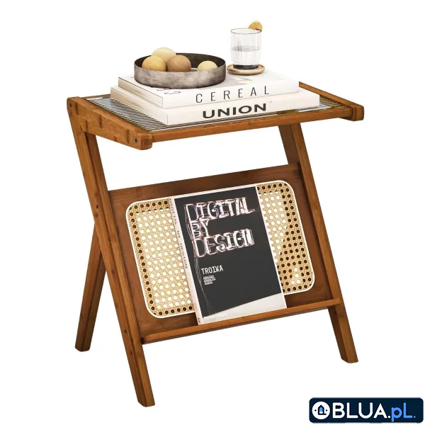 Ten piękny stolik w stylu boho sprawi, że Twój salon lub sypialnia nabiorą nowego charakteru. To wyjątkowo udane połączenie prostej elegancji i funkcjonalności. Blat z hartowanego szkła i półeczka na czasopisma i książki pozwolą Ci mieć pod ręką wszystko, po co często sięgasz. Konstrukcja z bambusa jest mocna i stabilna- możesz bezpiecznie położyć na stoliku laptop lub ustawić ulubioną roślinę doniczkową. Zgrabny mebel doskonale sprawdzi się w niewielkich pomieszczeniach. Solidna konstrukcja: Naturalny klejony bambus to mocny i trwały materiał dający gwarancję długiego użytkowania mebla. Konstrukcja nie tylko świetnie wygląda, ale jest też bardzo stabilna. Natomiast podkładki z tworzywa chronią podłogę przed porysowaniem. Zdejmowany szklany blat: Tafla blatu wykonana jest z hartowanego szkła, odpornego na stłuczenie, porysowanie i wysoką temperaturę. Blat bez problemu możesz wyjąć z ramy, aby dokładnie go umyć. Styl i funkcjonalność: Połączenie szkła, bambusa i naturalnego rattanu doda charakteru każdej przestrzeni. Stolik możesz wykorzystać praktycznie wszędzie- w salonie jako stolik boczny, w sypialni jako stolik nocny, czy w przedpokoju jako konsolkę na drobiazgi i nie tylko. Łatwy montaż i utrzymanie w czystości: Czytelna instrukcja z rysunkami pozwoli Ci z łatwością zmontować stolik, nawet jeśli nie masz doświadczenia technicznego. Gładkie, wodoodporne powierzchnie i szklany blat z łatwością wyczyścisz miękką szmatką.