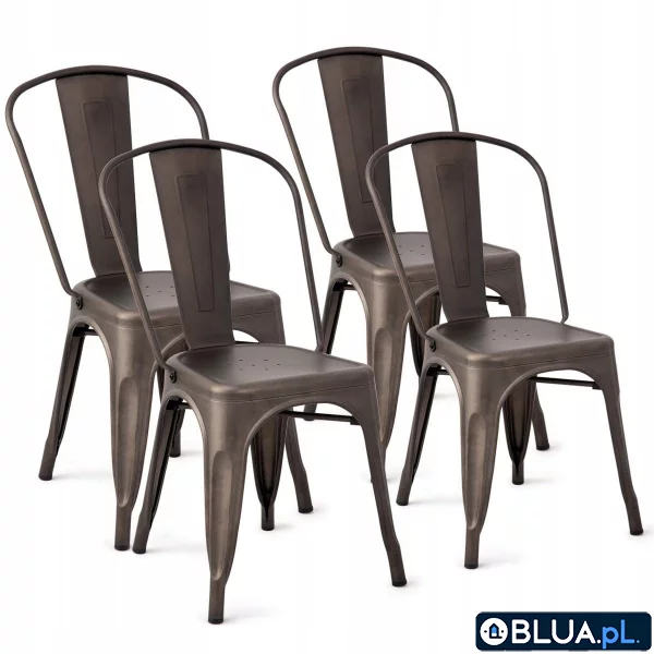 Zestaw 4 metalowych krzeseł Ergonomiczna konstrukcja - ergonomicznie wyprofilowane oparcia i siedziska sprawiają, że krzesła idealnie odpowiadają kształtowi ciała, zmniejszają nacisk na plecy oraz zapewniają komfort siedzenia przez długi czas Wysokiej jakości materiały - krzesła zostały wykonane z najwyższej jakości polerowanej stali, dzięki czemu gwarantują niezrównaną wytrzymałość, stabilność i trwałość oraz odporność na korozję Industrialny design - prosty, industrialny styl sprawia, że krzesła idealnie nadają się do użytku domowego, restauracyjnego, czy firmowego. Ponadczasowa forma doskonale pasuje do każdego motywu dekoracyjnego Łatwość montażu - krzesła są bardzo proste w montażu. Wszystkie elementy potrzebne do instalacji zostały dołączone do zestawu W zestawie: 4 krzesła Akcesoria do montażu