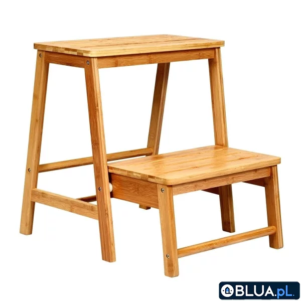 Składany taboret drabina z drewna Nie możesz sięgnąć do górnej części szafek? Ten taboret z dwoma stopniami jest idealny właśnie dla Ciebie. Taboret - drabina ma 48 cm wysokości, więc bez problemu dotrzesz do najwyższych miejsc w szafkach. Wykonany z naturalnego bambusa, ten 2-stopniowy stołek jest bezpieczny i stabilny w użyciu. Bambusowe nóżki wspierane są solidną konstrukcją. Dzięki swojej praktyczności może być również używany jako sadzarka ogrodowa, stołek do zmiany butów lub stolik boczny przy łóżku. Dolna część wsuwa się do środka konstrukcji, a dzięki temu taboret zajmuje mniej miejsca podczas przechowywania. Składany i przenośny stołek: 2-poziomowy, składany stołek jest idealny do pracy w kuchni, biurze i łazience, ale jest również wygodny do siedzenia lub jako dodatkowy stopień. Dolna część może być złożona, co ułatwia przechowywanie i zajmuje niewiele miejsca. Trwała konstrukcja bambusowa: Wykonany z wysokiej jakości drewna bambusowego, taboret jest mocny i trwały, utrzymuje do 100 kg obciążenia. Gwarantuje bezpieczeństwo podczas użytkowania, można na nim stabilnie stanąć jak również swobodnie usiąść. Praktyczny i wielofunkcyjny: Z dwoma stopniami i składaną konstrukcją stołek jest idealny do używania w domu, szczególnie w kuchni, lecz może być używany też jako sadzarka na balkonie lub stolik kawowy w salonie. Bezpieczna konstrukcja: Zarówno rogi, jak i krawędzie są zaokrąglone, aby zapobiec przypadkowym zadrapaniom. Rowkowany wzór na powierzchni zwiększa przyczepność i pozwala na bezpieczne korzystanie z niego. Dodatkowo gładka powierzchnia łatwo się czyści i jest przyjemna w dotyku. Łatwy do przenoszenia i użytkowania: Waży zaledwie 3,5 kg, jest lekki i bardzo łatwy w transporcie. Ponadto, dzięki jasnej instrukcji i wszystkim narzędziom, stołek jest łatwy w montażu.