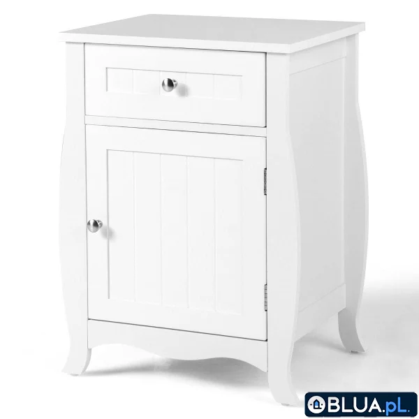 Drewniany stolik nocny z szafką i szufladą Odśwież swoją sypialnię dzięki naszej nowoczesnej i eleganckiej szafce nocnej! Mocna konstrukcja z najwyższej jakości płyt MDF zapewnia stabilność oraz trwałość przez lata użytkowania. Estetyczne zakrzywione linie i wzory deseczek nadają szykowności szafce i jej otoczeniu. Zabezpieczenie przed przechyleniem zapobiega chybotaniu oraz zwiększa stabilność, zapewniając przy tym najwyższe bezpieczeństwo użytkowania przez każdego członka rodziny. Dzięki dołączonej do zestawu szczegółowej instrukcji oraz wszystkim niezbędnym akcesoriom montaż przebiega prosto i sprawnie. Szafka doskonale sprawdzi się jako stolik na dekoracje w salonie lub stolik nocny w sypialni, pełniąc również rolę estetycznej dekoracji wnętrza.Dużo miejsca do przechowywania: Na przestronnym blacie można umieścić różne przedmioty codziennego użytku, takie jak lampka nocna i budzik. Szuflada i przestrzeń za drzwiczkami pozwalają na przechowywanie prywatnych przedmiotów i utrzymanie porządku w pokoju. Szuflada wyposażona została w gładkie prowadnice, które ułatwiają jej wysuwanie i zasuwanie. Drzwiczki posiadają zamek magnetyczny, który zapobiega gwałtownemu zamykaniu i redukuje hałas. Solidna konstrukcja z zabezpieczeniem przed przechyleniem: Wykonanie z wysokiej jakości płyty MDF gwarantuje doskonałą stabilność i bezpieczeństwo. Konstrukcja stolika wyposażona została w uchwyt zabezpieczający przed przewróceniem, który pozwala przymocować mebel do ściany. Dodatkowo zwiększa to bezpieczeństwo podczas codziennego użytkowania przez całą rodzinę. Elegancki i nowoczesny design: Zakrzywione nogi i design z estetycznymi liniami nadają przestrzeni stylu i odrobinę nowoczesności. Pionowe żłobienia na powierzchni drzwiczek i szuflady sprawiają, stolik ten jest znakomitym dodatkiem do każdego domu i biura. Wszechstronne zastosowanie: Doskonale sprawdzi się ona jako szafka nocna w pobliżu łóżka lub jako stolik na dekoracje w salonie. Jej kompaktowy rozmiar pozwala zaoszczędzić miejsce w pomieszczeniu i utrzymać schludny porządek. Szczegółowa instrukcja i informacje o rozmiarach: Dzięki dołączonej do zestawu szczegółowej instrukcji oraz wszystkim niezbędnym akcesoriom montaż szafki jest prosty i szybki. Jej wymiary całkowite wynoszą 45 x 34 x 60,5 cm (dł. x gł. x wys.). Opakowanie zawiera: 1 x szafka 1 x instrukcja