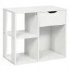 Stolik boczny z 2 półkami Duża przestrzeń do przechowywania - 2 otwarte półki oraz długi blat zapewniają dużą przestrzeń do przechowywania oraz ekspozycji dekoracji i akcesoriów Wysokiej jakości materiały - szafka została wykonana z wysokiej jakości płyty PB, dzięki czemu gwarantuje wytrzymałość, stabilność i trwałość Nowoczesny design - prosty nowoczesny styl sprawdzi się w każdym pomieszczeniu. Mebel może służyć jako szafka nocna w sypialni lub dodatkowy stolik boczny w salonie Łatwość montażu - szafka jest bardzo prosta w montażu. Wszystkie elementy potrzebne do instalacji zostały dołączone do zestawu