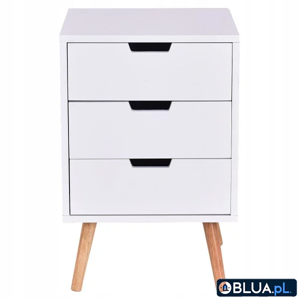 Szafka nocna w stylu skandynawskim Nowoczesna szafka idealna do Twojej sypialni oraz salonu! Dużo miejsca do przechowywania - 3 pojemne szuflady zapewniają dużo miejsca do przechowywania Twoich ulubionych przedmiotów i akcesoriów Wysokiej jakości materiały - szafka została wykonana z najwyższej jakości płyty MDF oraz litego drewna, dzięki czemu zapewnia niezrównaną wytrzymałość, stabilność i trwałość Skandynawski design - nowoczesny, prosty design sprawdzi się w każdym pomieszczeniu. Może służyć jako szafka nocna w sypialni lub dodatkowy stolik boczny w salonie Łatwość montażu - szafka jest bardzo prosta w montażu. Wszystkie elementy potrzebne do instalacji zostały dołączone do zestawu