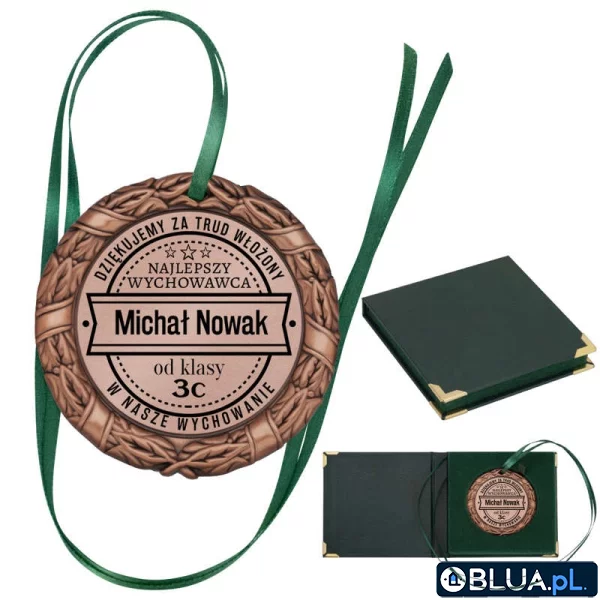 Medal z okolicznościową dedykacją to świetny pomysł na prezent dla nauczyciela. Efektownie wykonane odznaczenie z pewnością sprawi przyjemność i zaskoczy oryginalną formą. Na medalu możemy wykonać dowolną grafikę i tekst.