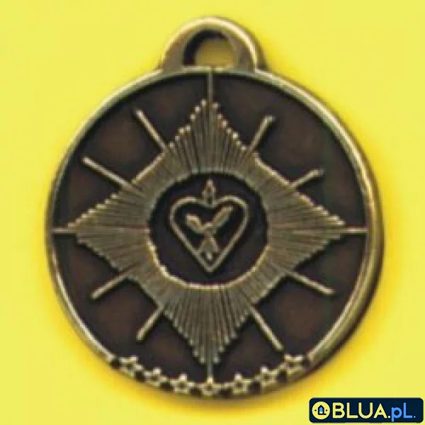 Symbol chrzecijański: Wiara, Nadzieja, Miłość. Okrąg zewnętrzny - koło - wyraża aureolę - atrybut jedynie Chrystusa i Marii - silnej wiary i prawdy. Krąg świetlistych promieni symbolizuje Boskie Światło, ktoacute;re daje nadzieję, oświeca , wskazuje drogę, prowadzi przez przeszkody (sznur gwiazd) do raju. Serce - symbol miłości Boskiej względem ludzi, ma wzbudzać w sercach ludzkich miłość do wszystkiego, co stworzył Boacute;g.