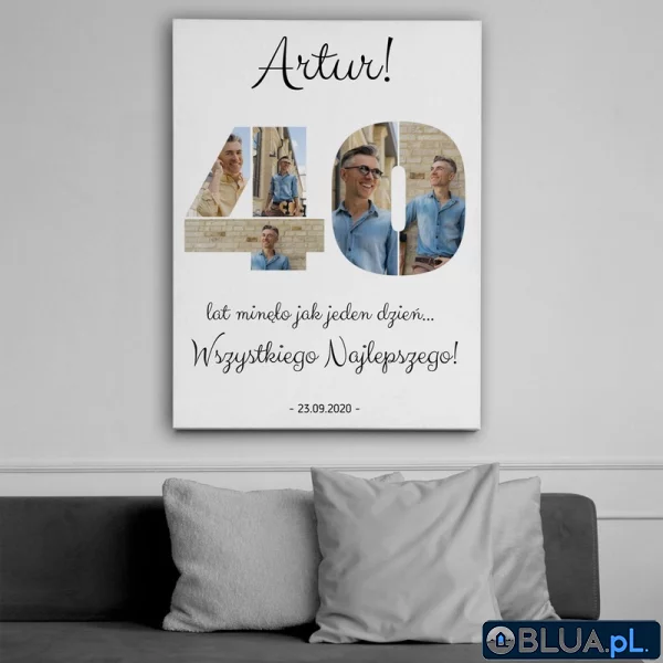 Fotoobraz na urodziny / 40 lat minęło jak jeden dzień / Prezent na 40 urodziny / 50x70 cm