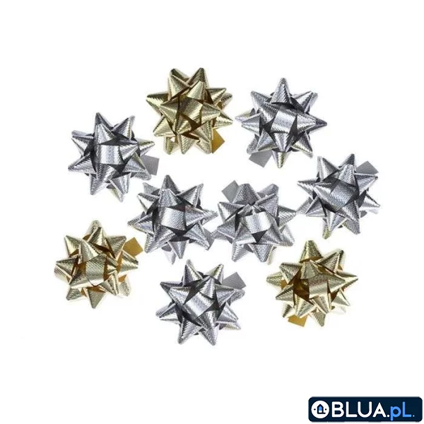 W paczce znajdują się 4 sztuki srebrnych kokardek oraz 4 złotych.