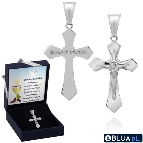 Krzyżyk srebrny pr.925 z Jezusem chrzest komunia bierzmowanie Grawer