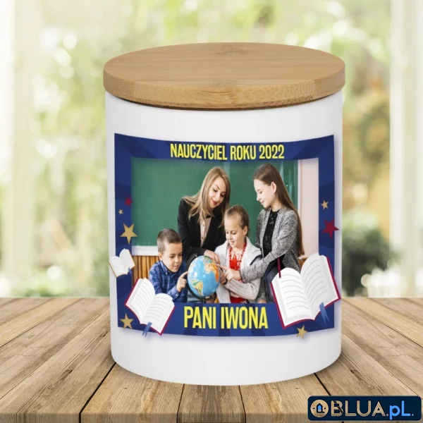 Kubek dla nauczyciela ze zdjęciem ceramiczny z pokrywką z Nadrukiem / 370 ml / na Dzień Nauczyciela
