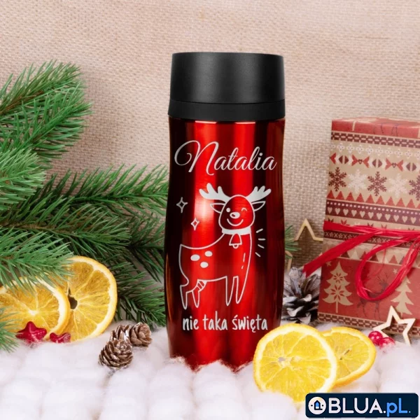 Kubek termiczny - czerwony / 350ml / Renifer / prezent na Święta, Mikołaja / Grawer