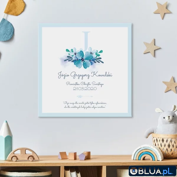 Niebieska litera - obraz na płótnie z życzeniami dla dziecka 40x40 cm