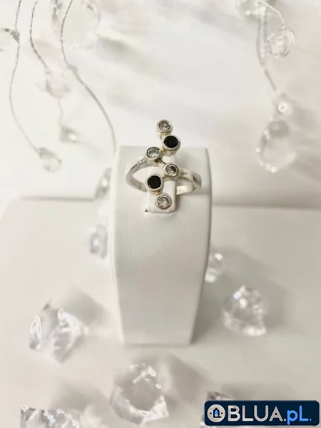 Pierścionek srebrny / pr. 925 / Ciekawy pierścionek / Aplikacja / Biżuteria na prezent / Cyrkonie / Prezent dla Niej