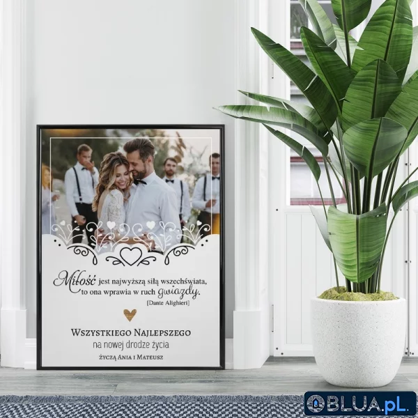 Plakat ze zdjęciem w ramce / Prezent na ślub / Czarna ramka 30x40 cm z plexi