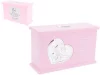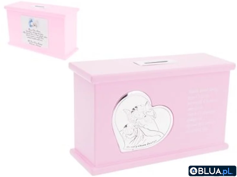 Posrebrzana Skarbonka z aniołkami drewno kolor różowy Chrzest Roczek Dedykacja