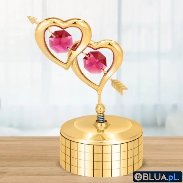 Pozytywka Dwa Serca platerowana jest 24-karatowym złotem. Precyzyjnie wykonana pozytywka będzie piękną ozdobą sypialni lub salonu. Połączenie złota z czerwienią austriackich kryształków daje znamienity efekt. Sentymentalny motyw Love Story doskonale dopełnia całość.