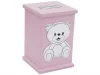 Skarbonka Pozytywka z misiem różowa Pamiątka na Chrzest Roczek DEDYKACJA