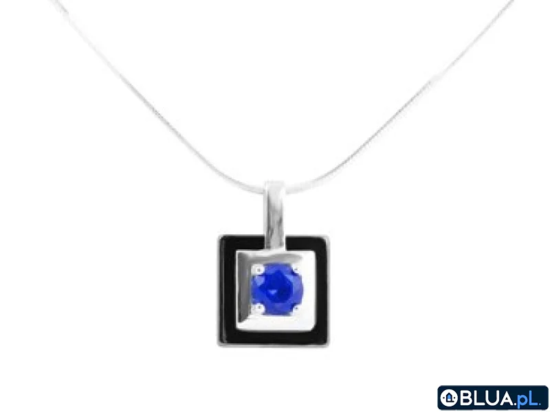 Srebrna zawieszka pr.925 czarny kwadrat z niebieskim oczkiem PREZENT
