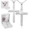 Srebrny duży krzyżyk z Jezusem z łańcuszkiem / na I Komunię Św. / Chrzest Św. / pr. 925 / różowa kokardka / z Grawerem i Dedykacją