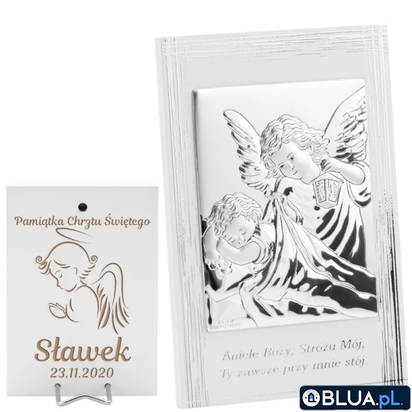 Srebrny Obrazek Anioł Stróż z latarenką 9x13,5 cm Pamiątka na chrzest z Grawerem