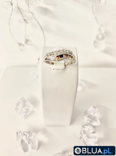 Proponujemy państwu piękny pierścionek wykonany ze srebra próby 925. Wysoka próba surowca sprawia, że pierścionek na długie lata zachowa swój atrakcyjny wygląd. Lakier ochronny, którym pokryty jest pierścionek dodatkowo zabezpiecza prezent przed czynnikami zewnętrznymi. Piękny kształt z dodatkiem cyrkonii i kolorowych kamieni sprawia, że będzie to idealny prezent dla kobiet ceniących delikatne, kobiece ozdoby.
