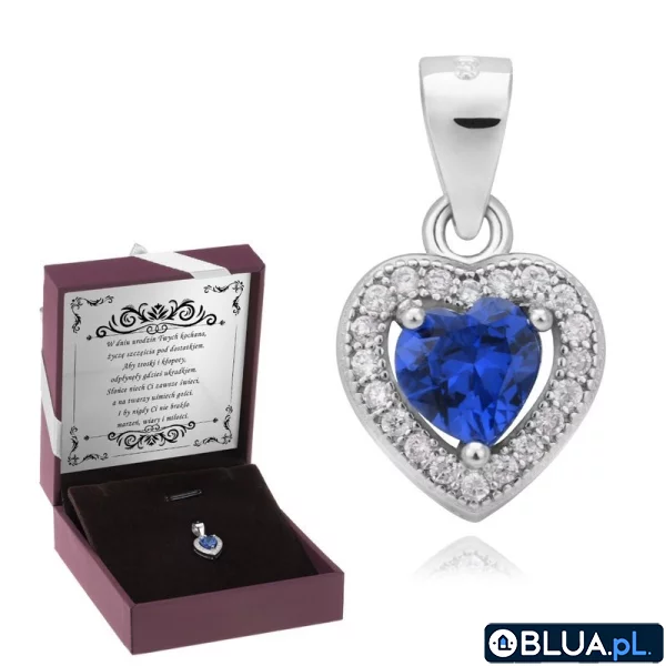 - Srebrny wisiorek w kształcie serca z niebieską cyrkonią.