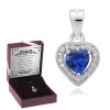 Wisiorek w kształcie serca, wykonany został ze srebra, o próbie 925. Ozdobiono go niebieską cyrkonią w środku i otaczającymi ją dookoła białymi cyrkoniami.