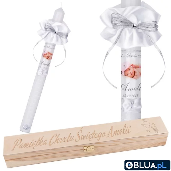 Świeca na chrzest ze zdjęciem dziecka oraz pudełkiem Model G11