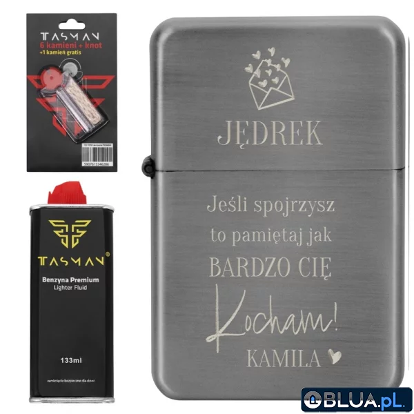 Zapalniczki benzynowa marki Tasman w kolorze szarego metalu, to niezawodne źródło ognia, w każdych warunkach. Zapalniczka posiada system Windproof, który umożliwia korzystanie przy wietrze (płomień nie gaśnie). Zapalniczka marki Tasman jest objęta dożywotnią gwarancją. Prosta, a zarazem solidnie wykonana zapalniczka z wysoką jakością i niezawodnością to główne cechy tej marki. Upominek zapakowany w eleganckie oryginalne pudełko producenta, zapalniczka posiada wieczystą gwarancję producenta.