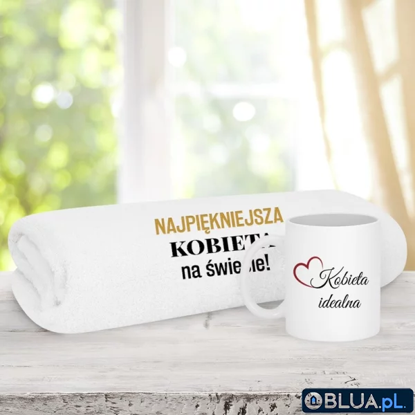 Przedstawiamy państwu wyjątkowy zestaw dla ukochanej na walentynki - ręcznik kąpielowy z haftem Najpiękniejsza Kobieta na Świecie i kubek z nadrukiem Kobieta Idealna. Ręcznik został wykonany z 100% wysokiej jakości bawełny, która zapewnia wyjątkową chłonność wody i jest przyjemna dla ciała. Dzięki ręcznikowi, twoja ukochana będzie mogła poczuć się w domowym zaciszu jak w prawdziwym spa. Duży, piękny kubek sprawi, że poranna kawa i wieczorna herbata będzie wyjątkowym i przyjemnym rytuałem. Do zestawu dołączamy celofan i ozdobną wstążkę, które umożliwiają samodzielne zapakowanie prezentu.