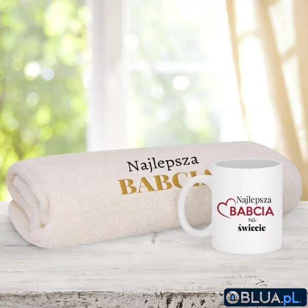 Zestaw prezentowy dla Babci / Ręcznik kąpielowy + Kubek / Bez modyfikacji / Prezent na Dzień Babci / Nadruk Haft