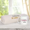 Nadruk na kubku i ręczniku, który jest widoczny na zdjęciach jest stały i nie podlega modyfikacji.