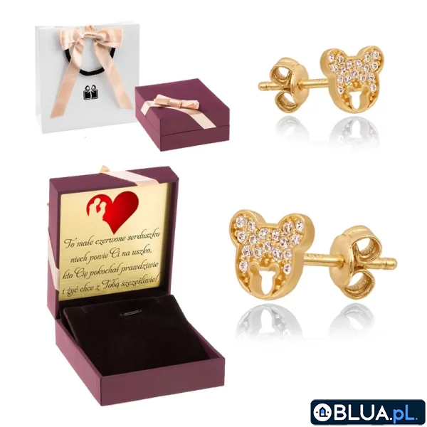 Złote Kolczyki / pr. 585 / Dedykacja / Kolczyki z Cyrkoniami / Prezent na Rocznicę / Ozdobne pudełeczko + Torebka