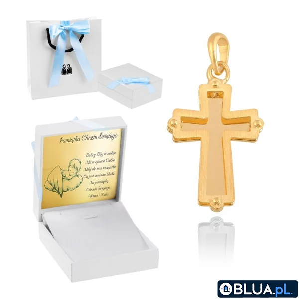 Złoty Krzyżyk / pr. 585 / Pamiątka na Komunię z dedykacją / Personalizacja / Prezent na Chrzest dla chłopca