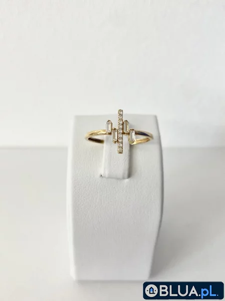 Złoty pierścionek z białymi cyrkoniami.