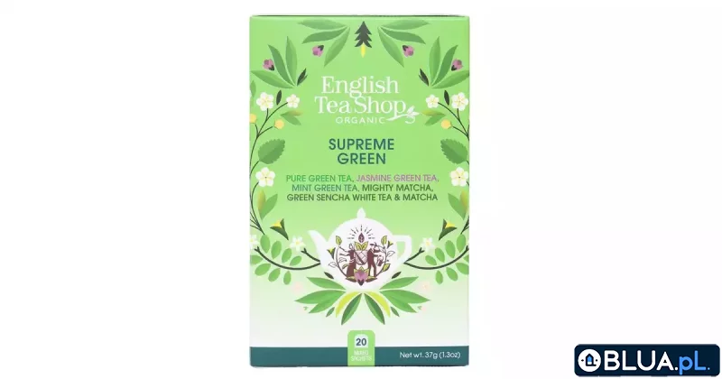 English Tea Shop Supreme Green to 20 aromatycznych saszetek zawierających doskonałą zieloną herbatę. Tajemnica jej smaku to połączenie kilku składników, w tym oryginalnej zielonej herbaty, jaśminowej zielonej herbaty, mięty oraz odmian wysokogórskiej sencha i sproszkowanej japońskiej matcha. W ten sposób otrzymujemy wyjątkową kompozycję aromatów i właściwości, które z pewnością przypadną do gustu miłośnikom nietuzinkowych herbat.