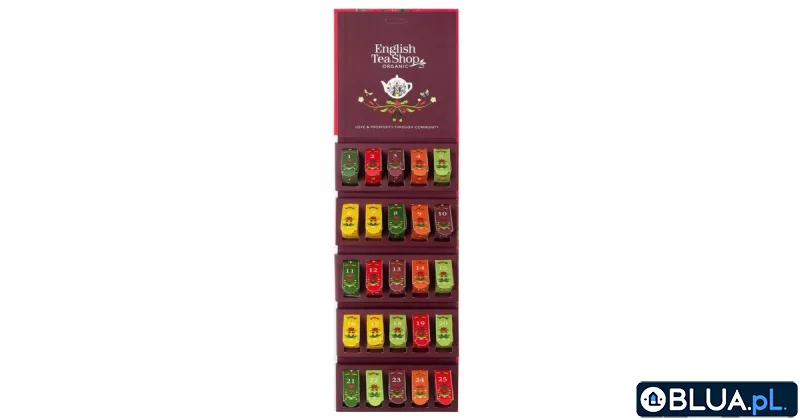 Wyjątkowa kolekcja, która zachwyci każdego smakosza herbaty. Idealna na prezent świąteczny dla dzieci i dorosłych. Na każdy dzień jedna piramidka herbaty.Smaki herbat:Ceylon Black Tea – Ekologiczna herbata czarna. Czas parzenia 4-5 min.Turmeric (Curcuma), Ginger & Lemongrass – Ekologiczna herbatka z imbirem, kurkumą, trawą cytrynową, lukrecją, goździkami, pieprzem, skórką z cytryny, nasionami kminu rzymskiego i kardamonem. Zawiera lukrecję – chorzy na nadciśnienie powinni unikać nadmiernego spożycia. Czas parzenia 3-4 min.Sencha Green Tea – Ekologiczna zielona herbata Sencha. Czas parzenia 2-3 min.Apple, Rosehip & Cinnamon – Ekologiczna herbatka z hibiskusem, dziką różą, jabłkiem, cynamonem i miętą pieprzową. Czas parzenia 3-5min.Cranberry, Hibiscus & Rosehip – Ekologiczna herbatka z hibiskusem, owocem dzikiej róży, trawą cytrynową, imbirem, garcynią i żurawiną. Czas parzenia 3-5min.Ceylon Cinnamon – Ekologiczna herbatka z cynamonem, imbirem i kardamonem. Czas parzenia 4-5min.Mate, Cocoa & Coconut – Ekologiczna herbatka z yerba mate, kakao, imbirem, prażonym kokosem i lukrecją. Zawiera lukrecję – chorzy na nadciśnienie powinni unikać nadmiernego spożycia. Czas parzenia 3-5min.Lemongrass, Citrus & Ginger – Ekologiczna herbatka z trawą cytrynową, skórką z pomarańczy i imbirem. Czas parzenia 3-4min.Cocoa, Cinnamon & Ginger – Ekologiczna herbatka z cynamonu, kakao, kopru włoskiego i imbiru. Czas parzenia 4-5min.Holiday Boost – Ekologiczna herbatka z dziką różą, hibiskusem, cynamonem, miętą pieprzową, jabłkiem, lukrecją i płatkami róży. Zawiera lukrecję – chorzy na nadciśnienie powinni unikać nadmiernego spożycia. Czas parzenia 3-5min.Winter Balance – Ekologiczna herbatka z miętą pieprzową, miętą zieloną, kozieradką, cynamonem, skórką z cytryny, koprem włoskim, kurkumą i czarnym bzem. Czas parzenia 2-3min.Winter Warmer – Ekologiczna herbatka z rooibosem, kakao, imbirem, kwiatem muszkatołowym i anyżem. Czas parzenia 3-5min.Tropical Lemongrass – Ekologiczna herbatka z trawą cytrynową, miętą pieprzową, hibiskusem, dziką różą, jabłkiem i rumiankiem. Czas parzenia 2-3min.