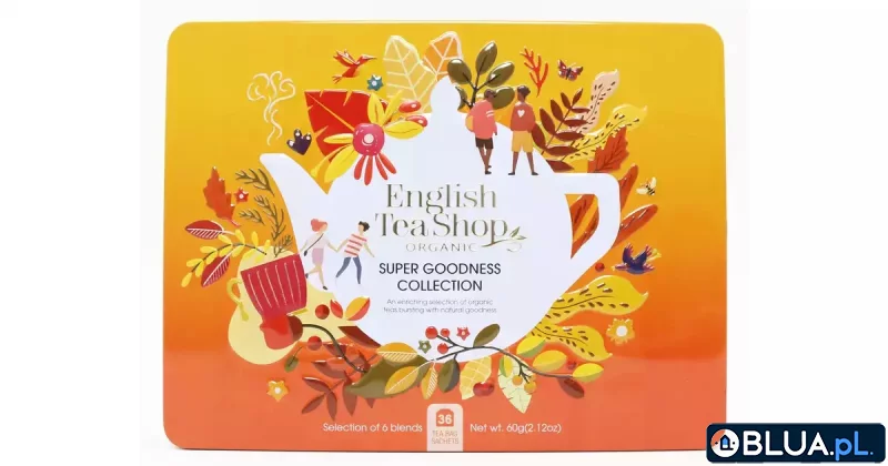 Elegancka metalowa puszka z kolekcją organicznych herbat Super Goodness. Opakowanie EKO, wolne od plastiku. Puszka nadaje się do recyklingu, wnętrze wykonane z papieru.Smaki herbat: White Tea, Matcha i Cinnamon - Ekologiczna herbata biała z cynamonem, herbata matcha i imbiremCinnamon, Moringa i Ginger - Ekologiczna herbatka ziołowa z cynamonem, moringą i imbirem.Mighty Matcha - Ekologiczna herbata zielona z prażonym ryżem, kakao, yerba mate i herbata matchaTurmeric (Curcuma), Ginger i Lemongrass - Ekologiczna herbatka ziołowa z imbirem, kurkumą i trawą cytrynową.Cranberry, Hibiscus i Rosehip - Ekologiczna herbatka ziołowa z hibiskusa z owocem dzikiej róży, trawą cytrynową, imbirem, mangostanem, kwaskiem cytrynowym i żurawiną.Beetroot, Ginger i Curry Leaves - Ekologiczna herbatka ziołowa z burakiem, marchwią, imbirem, liśćmi curry i pietruszka.