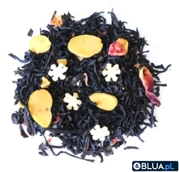 Smak: pieczone jabłka z migdałamiSkładniki: herbata czarna, cukrowe gwiazdki, jabłka, migdały, aromat, płatki róży