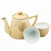 Zestaw czajnik w chińskim stylu + czarki spod ręki pana Fortelnego Gliniany czajnik o pojemności około 300 ml z przykrywką, szkliwiony wewnątrz. Został wykonany w pracowni pana Fortelnego w czeskiej Pradze. Wykonany jako odlew ceramiczny o dosyć grubej ściance przez co jest bardzo trwały. Naczynie idealne do łatwego parzenia herbat wielonaparowych. Nadaje się do każdego rodzaju liści, także herbat japońskich. Ergonomia wykonania pozwala na zlewanie naparu jedną ręką. Pojemność pozwala na parzenie dla co najmniej dwóch osób. Polecamy jako uniwersalne naczynie na początek drogi herbacianej lub jako prostą alternatywę dla wyszukanych utensyliów do herbaty. W zestawie z jedną lub dwoma czarkami. Pan Fortelny Dla całej rodziny Czajowni od kilkudziesięciu lat, ceramikę tworzy Pan Fortelny czyli Pavel Raunigr. Czeski ceramik, który produkuje ceramikę zaprojektowaną specjalnie na użytek sieci naszych herbaciarni. Ścianki jego odlewanych naczyń są nieco grubsze od standardowej produkcji najlepszych artystów-ceramików, a to znacznie zwiększa trwałość, tak pożądaną w codziennym użytkowaniu. Nie znaczy też wcale, że naczynia są toporne. Dobrze ukształtowany, odcinający dziubek i spasowane wieczko świadczą o najwyższej jakości i doświadczeniu ceramika.