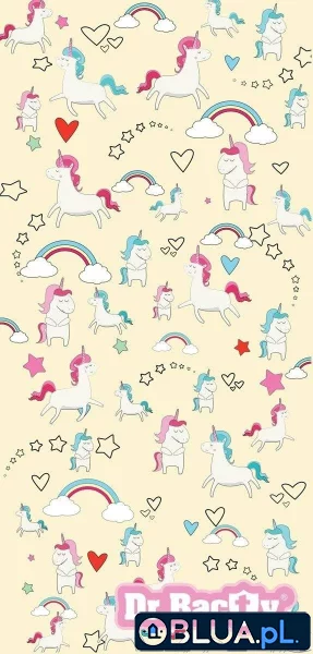 Plażowy ręcznik dziecięcy z nadrukiem dwustronny Dr.Bacty - Jednorożec Żółty - XL 70x140