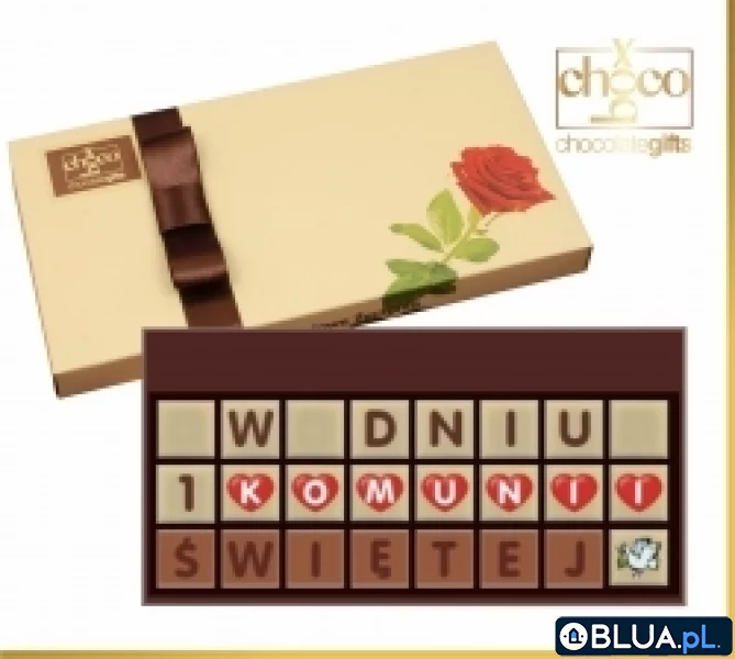 Podarunek na Komunię w postaci Czekoladowych Życzeń. Ułóż własne i wyślij. Waga 216g.