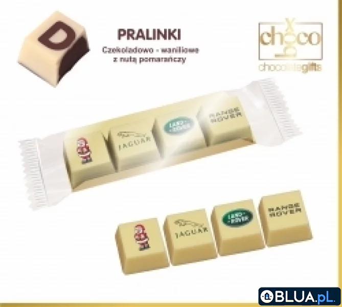Kolorowe, czekoladowe kostki nadziewane czekoladowo-waniliowym kremem. Waga 36g.