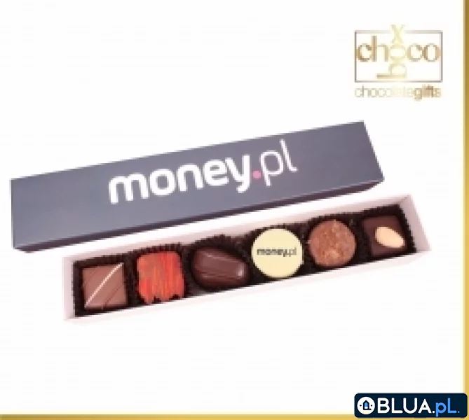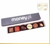 Czekoladki w drukowanym kartoniku z logotypem firmowym. Waga 85g.