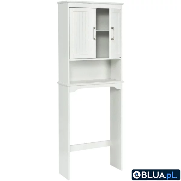 Szafka łazienkowa wysoka nad toaletę Nasza szafka nad toaletą to sposób na zagospodarowanie najczęściej niewykorzystanej przestrzeni, zwiększając tym samym ogólną użyteczność łazienki. Dwudrzwiowa konstrukcja oferuje estetyczny wygląd i praktyczny dostęp do przedmiotów ukrytych w jej środku . Dodatkowo regulowana wewnętrzna półka pozwala dopasować miejsce w środku do przedmiotów o różnych rozmiarach. Nasza pionowa szafka idealnie sprawdzi się w łazienkach, nad pralką, koszem na pranie, czy też nad toaletą. Elegancki i nowoczesny wygląd idealnie pasuje do łazienki o klasycznym lub nowoczesnym wyglądzie. Trwałe płyty MDF i solidna konstrukcja sprawią, że Twój dom będzie zawsze czysty i uporządkowany. Jeśli lubisz mieć wszystko schludne i uporządkowane, pokochasz tę szafkę. Regulowana półka i przegroda: W górnej części szafy znajduje się wewnętrzna półka, której wysokość można regulować w zależności od wielkości przechowywanych przedmiotów. Dzięki przegrodzie wszystko jest schludniejsze i bardziej uporządkowane. Na otwartych półkach można umieścić przedmioty codziennego użytku, a nawet dekoracje. Konstrukcja z podwójnymi drzwiami: Szafa posiada parę drzwi z pasiastymi zdobieniami, które nie tylko dodają elegancji, ale także zakrywają zawartość. Górna część drzwi posiada magnetyczny zamek ułatwiającą otwieranie i zamykanie. Wielofunkcyjna przestrzeń dolna: Rozmiar przestrzeni dolnej jest bardzo duży, idealny dla większości toalet na rynku. Dodatkowo pod szafką można umieścić pralkę, kosz na pranie i wiele innych, aby maksymalnie wykorzystać przestrzeń w zależności od wielkości. Ta półka to doskonały wybór do łazienek, pralni a nawet innych pomieszczeń. Solidna i trwała konstrukcja: Nasza półka wykonana jest z wysokiej jakości płyty MDF z trwałymi metalowymi śrubami. Konstrukcja jest solidna i trwała, a 4 nóżki z drewna sosnowego doskonale ją podtrzymują. Dodatkowo, aby zapobiec chybotaniu się, w zestawie znajdują się śruby, dzięki którym można zamontować szafkę do ściany. Łatwy montaż i oszczędność miejsca: Ta poszerzająca miejsce półka łazienkowa została precyzyjnie wypolerowana i polakierowana ekologiczną farbą, dzięki czemu powierzchnia wygląda gładko i posiada nowoczesny, elegancki wygląd. Całość jest łatwa do złożenia, postępując zgodnie z instrukcją w kilka chwil zyskasz dodatkowa przestrzeń pionową w postaci nowego, eleganckiego mebla łazienkowego. Paczka z produktem zawiera: 1 x półka łazienkowa 1 x instrukcja