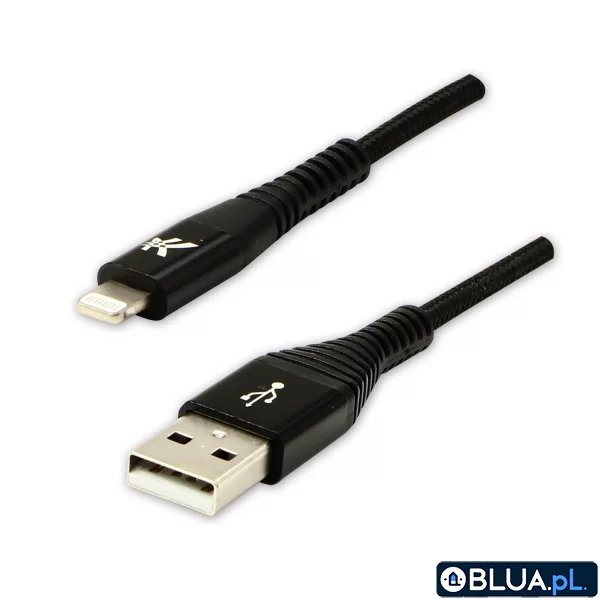 Kabel USB (2.0), USB A M- Apple Lightning M, 2m, MFi certifikat, 5V/2,4A, czarny, Logo, box, oplot nylonowy, aluminiowa osłona