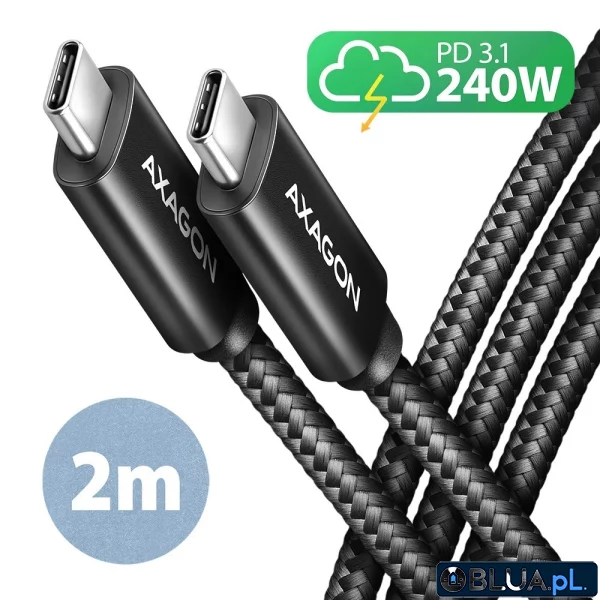 AXAGON BUCM2-CM20AB Kabel USB-C - USB-C, 2.0m 5A charging, ALU, 240W PD, oplot, USB2.0