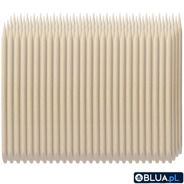 Patyczki z drzewa pomarańczowego. Z jednej strony zakończone szpicem, a z drugiej kopytkiem ułatwiającym odpychanie skórek. Lekkie i wygodne w użyciu. Długość: 10 cm Opakowanie: 150 szt.
