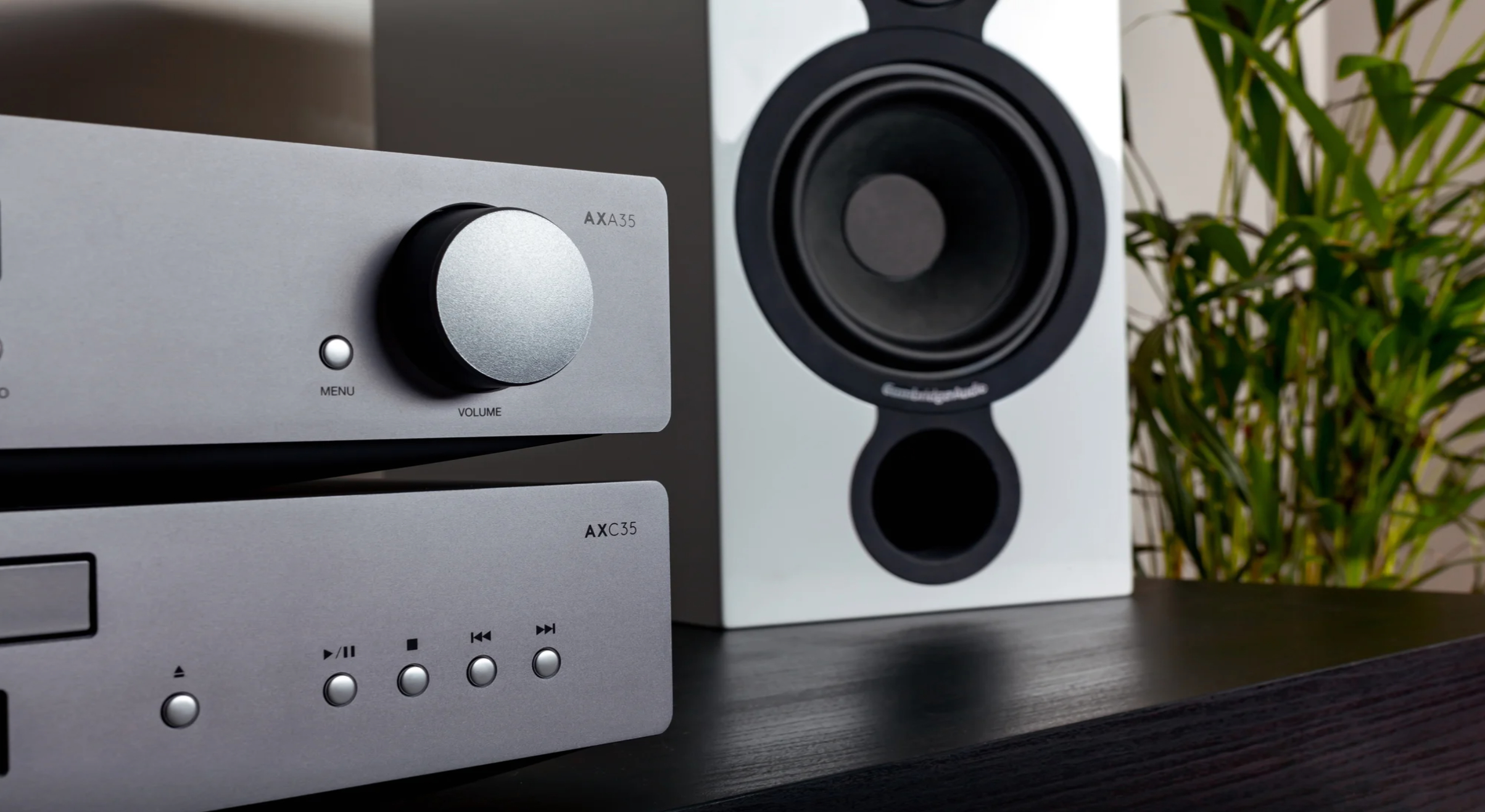 AXA35 zapewnia moc 35 W dla każdego kanału, zintegrowany przedwzmacniacz gramofonowy z ruchomym magnesem dla entuzjastów winylu, biały wyświetlacz oraz gniazdo słuchawkowe 6,4 mm.