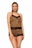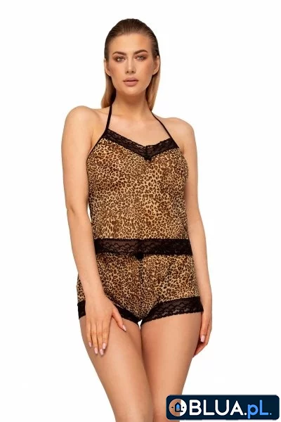ELVERA SET Wyobraź sobie piżamkę idealną jednocześnie zmysłową i wygodną . Niech cię skusi jej look i kolorystyka. Delikatny tiul otuli Twoje ciało a super seksowny wzór zapewni mnóstwo doznań. Uzupełnieniem jest fantazyjne wiązanie na szyi i fryw...
