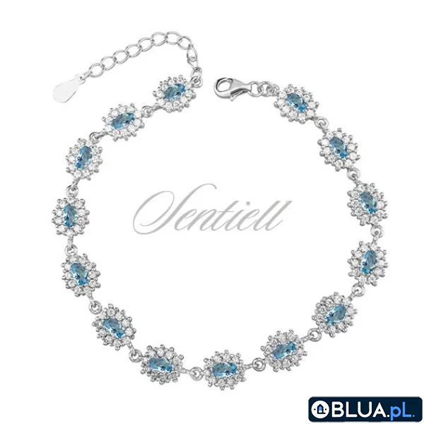 Srebrna modna bransoletka pr.925 Cyrkonia akwamarynowa - karmazycja